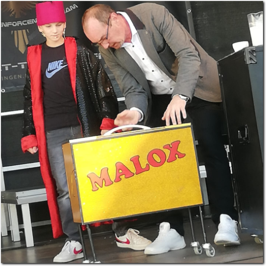 Wenn der Sohn, der talentierte Zauberer Malox, zusammen mit seinem Vater Steffen auftritt, ist für die beste Unterhaltung garantiert. Ihre außergewöhnlichen Kunststücke und die humorvolle Dynamik zwischen den beiden sorgen stets für eine unvergessliche Show, bei der niemand lange stillsitzen kann.